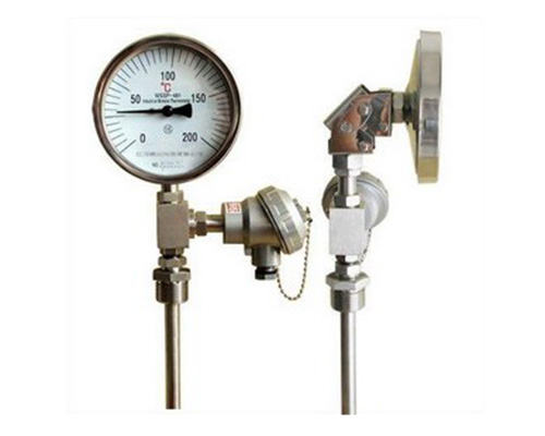 | 采用双金属温度计与热电偶/热电阻一体的方式,既满足现场测温需求,亦满足远距离传输需求,可以直接测量各种生产过程中的-80-+500℃范围内液体、蒸气和气体介质以及固体表面测温。 |