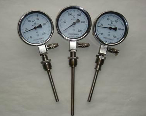| 双金属温度计是基于绕制成环性弯曲状的双金属片组成。一端受热膨胀时,带动指针旋转,工作仪表便显示出热电势所应的温度值。 |