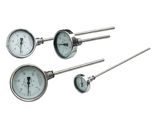 | 双金属温度计是基于绕制成环性弯曲状的双金属片组成。一端受热膨胀时,带动指针旋转,工作仪表便显示出热电势所应的温度值。 |